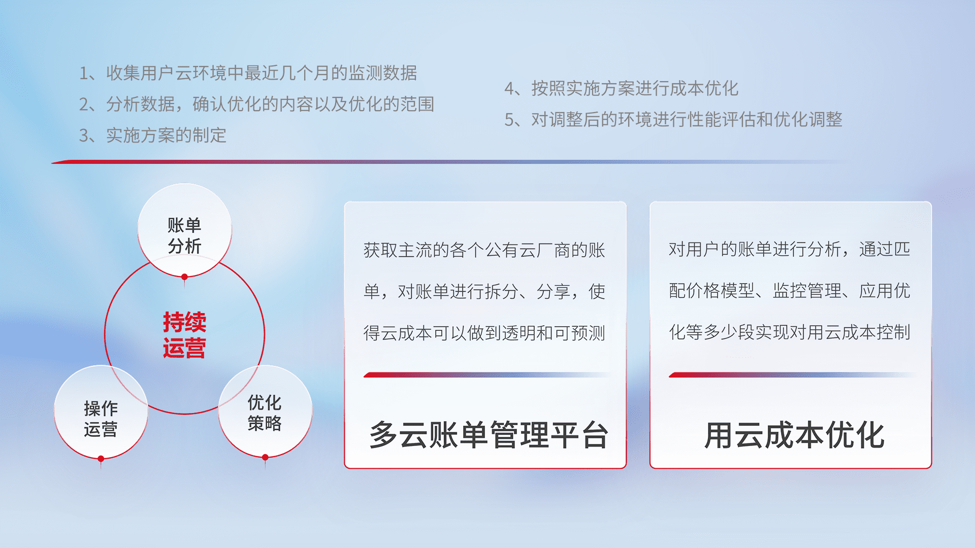 运用智能化工具分析云资源,,提供日常费用可视化工具,,,自动账单拆分,,成本优化云上费用,,,降本增效。。